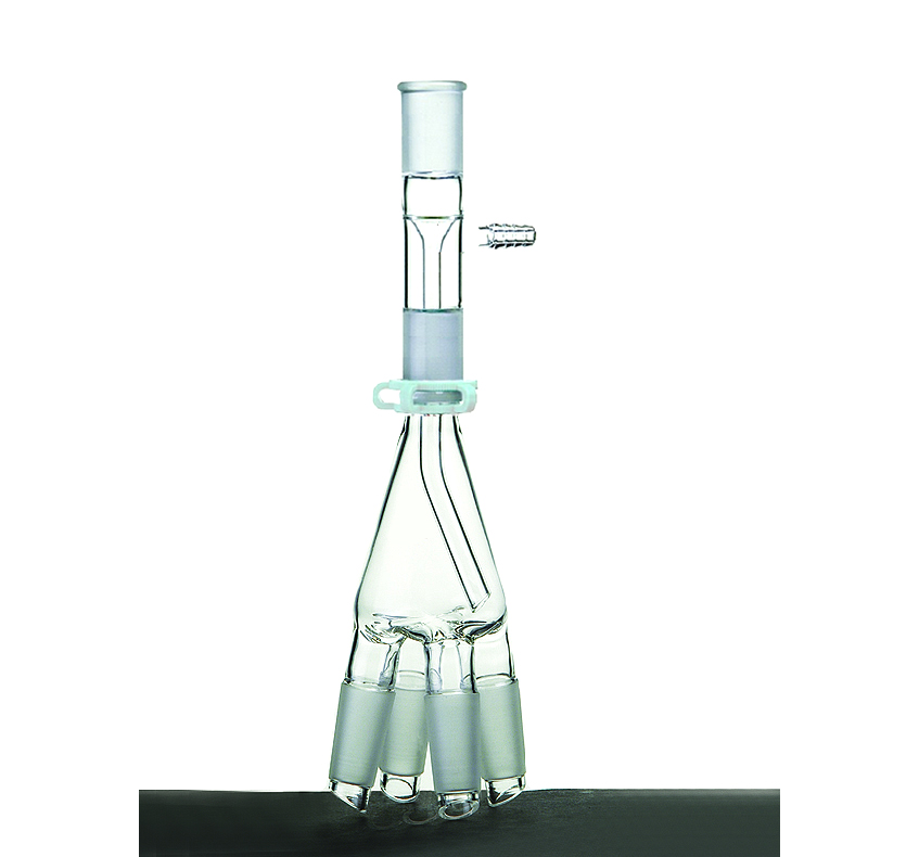 Distillation receiving set with straight top connection and four NS 14/23 cones