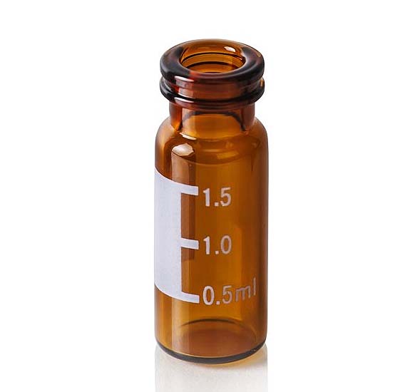 Autosampler "Snap Top"  vials in clear or amber glass, also available graduated with writing area.