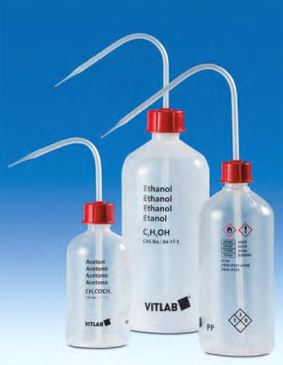 All VITsafe™ safety wash-bottles are available in two variations. To VITLAB's traditional narrow-mouth wash-bottles we have added a new line of wide- mouth wash-bottles that simplify filling, even without a funnel.